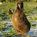 After a two month incubation period, albatross chicks emerge covered in a soft brown down. Unlike most mainland birds, albatrosses never evolved a fear of mammals. The chicks will approach any passerby hoping for a meal.