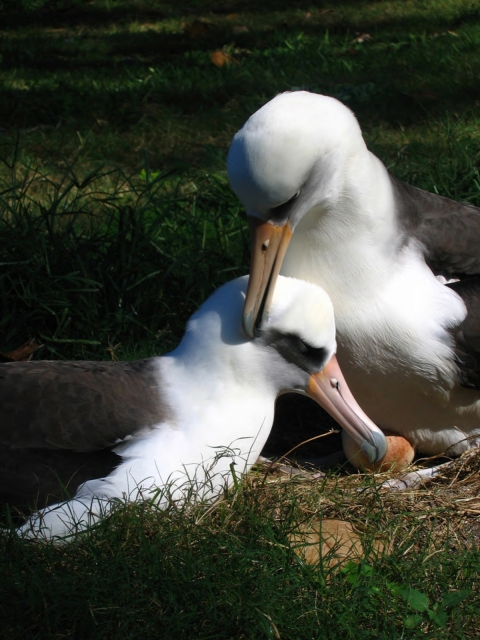 A pair of Laysan albatross on Midway Atoll National Wildlife Refuge. Image taken from USFWS Pacific Region Flickr page.