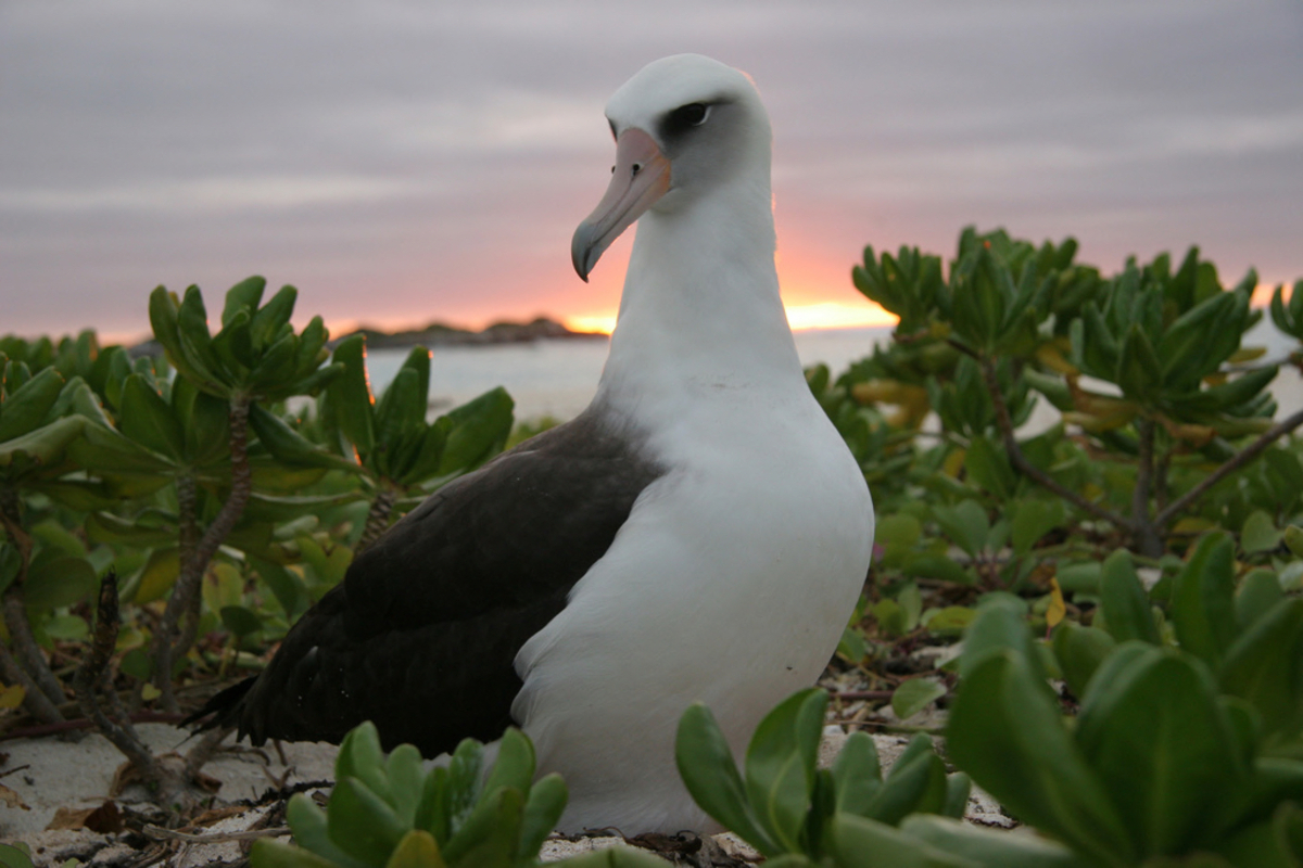 Laysan albatross poses before sunset at Midway Atoll National Wildlife Refuge. Image taken from USFWS Pacific Region Flickr page.