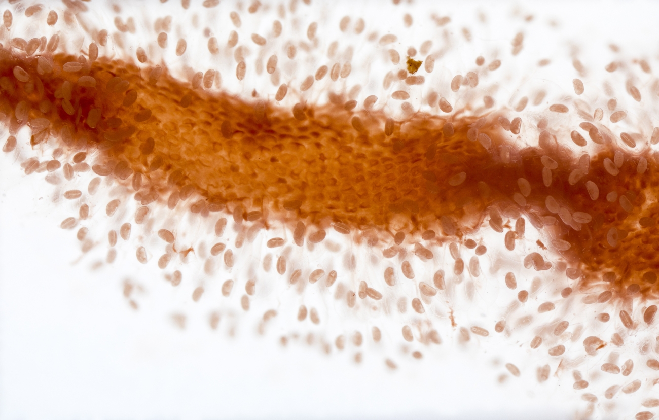 This is a conglutinate and contains the glochidia of the mussel. Dromedary pearlymussel