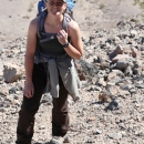 Leah Simantel, ecological restoration specialist looking for bighorn sheep on a mountain at the Ash Meadows National Wildlife Refuge in February 2023. Credit: John Heil/USFWS