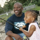A young girl learns to fish