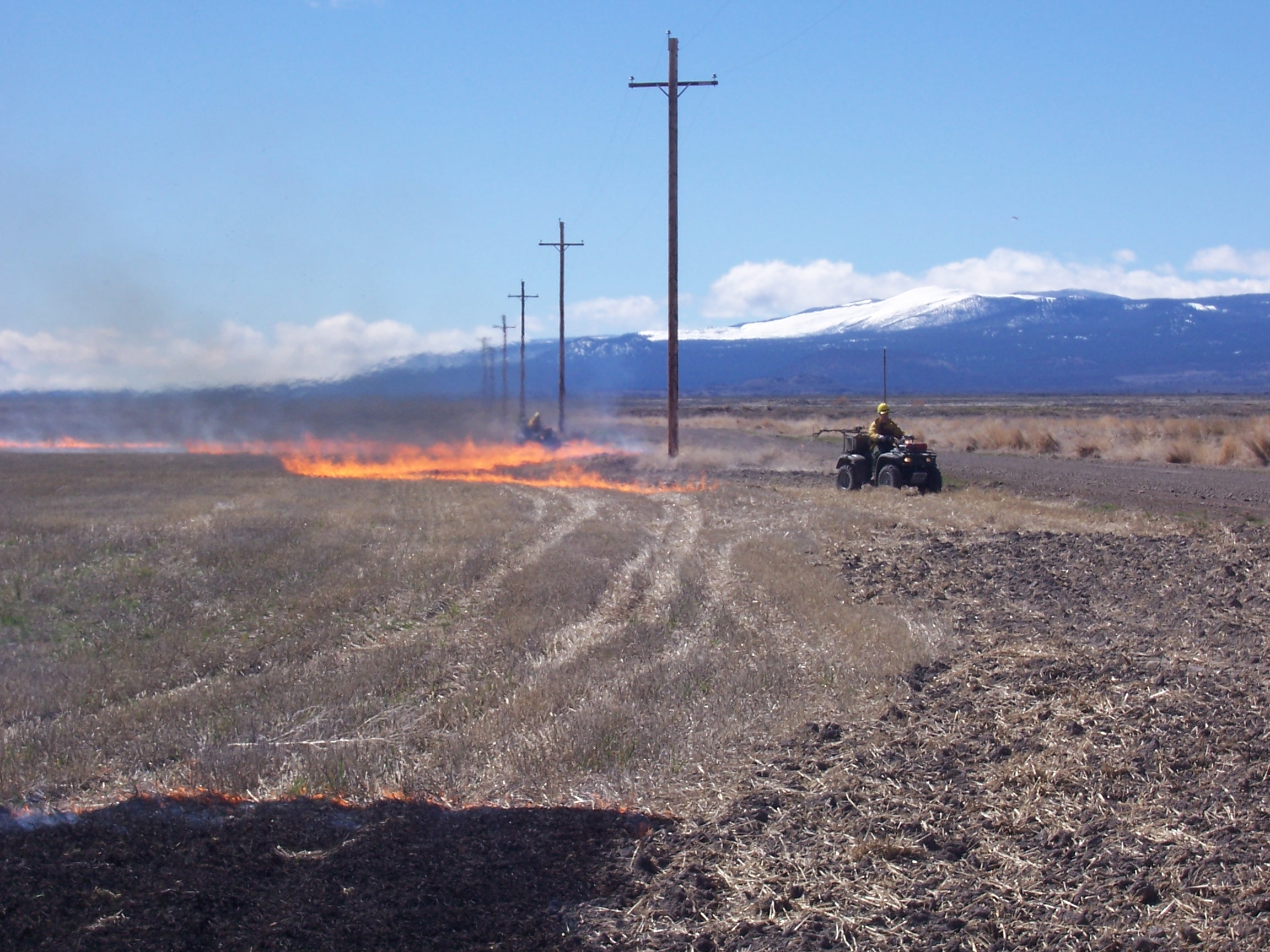 Field burning at Tule Lake NWR with specially outfitted ATV's.