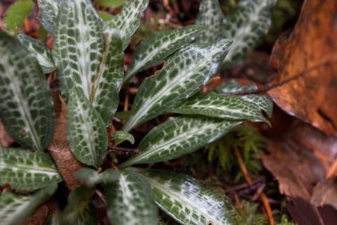 Leaves of rattlesnake plantain (Goodyera oblongifolia)