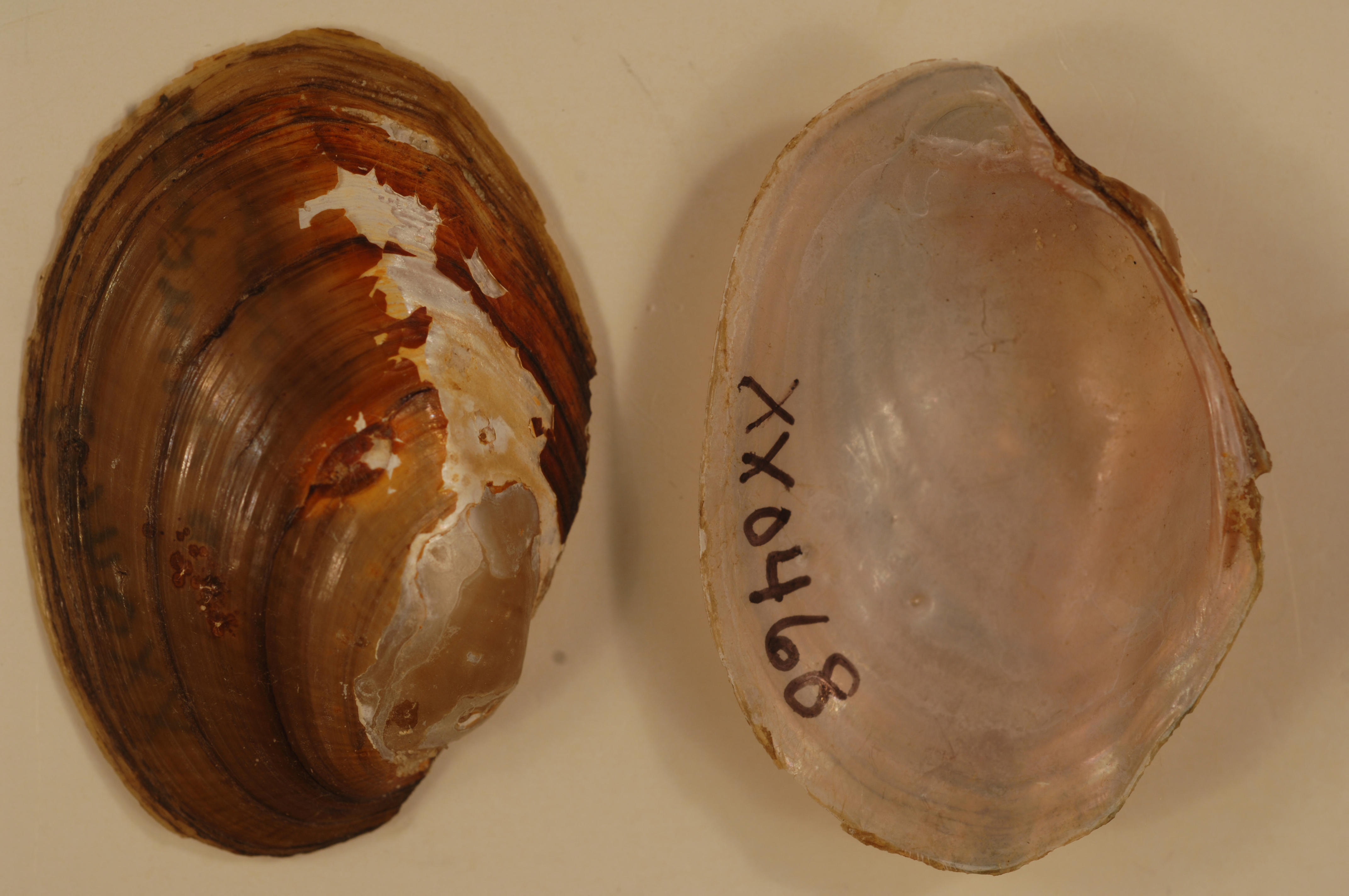 NCTC Freshwater Mussels Teaching Collection: Order: Unionoida Family: Unionidae Genus (ITIS): Leptodea Species: ochracea Williams et al.: Use to be: Location Name: Location State: XX