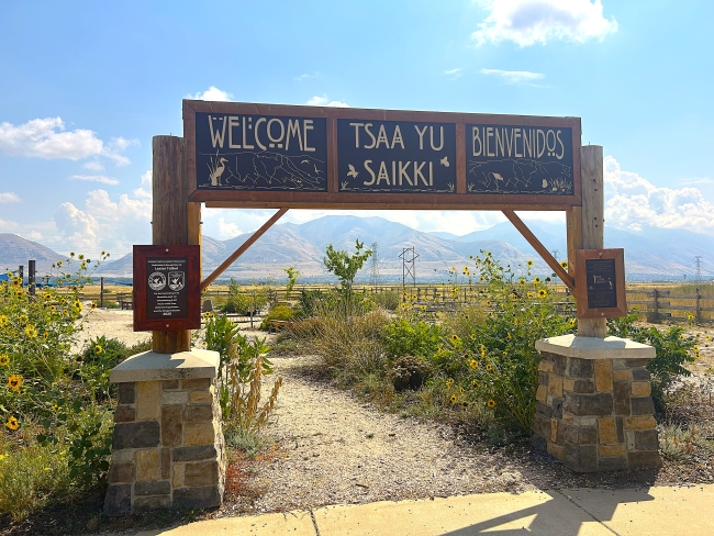 The Lester Talbot Outdoor Nature Explore Classroom sign at Bear River Migratory Bird Refuge.