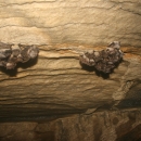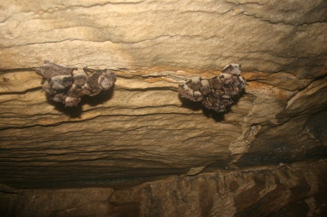Small clusters of Little brown Bats at Aeolus Cave. White-nose syndrome. Aeolus Cave, Vermont.