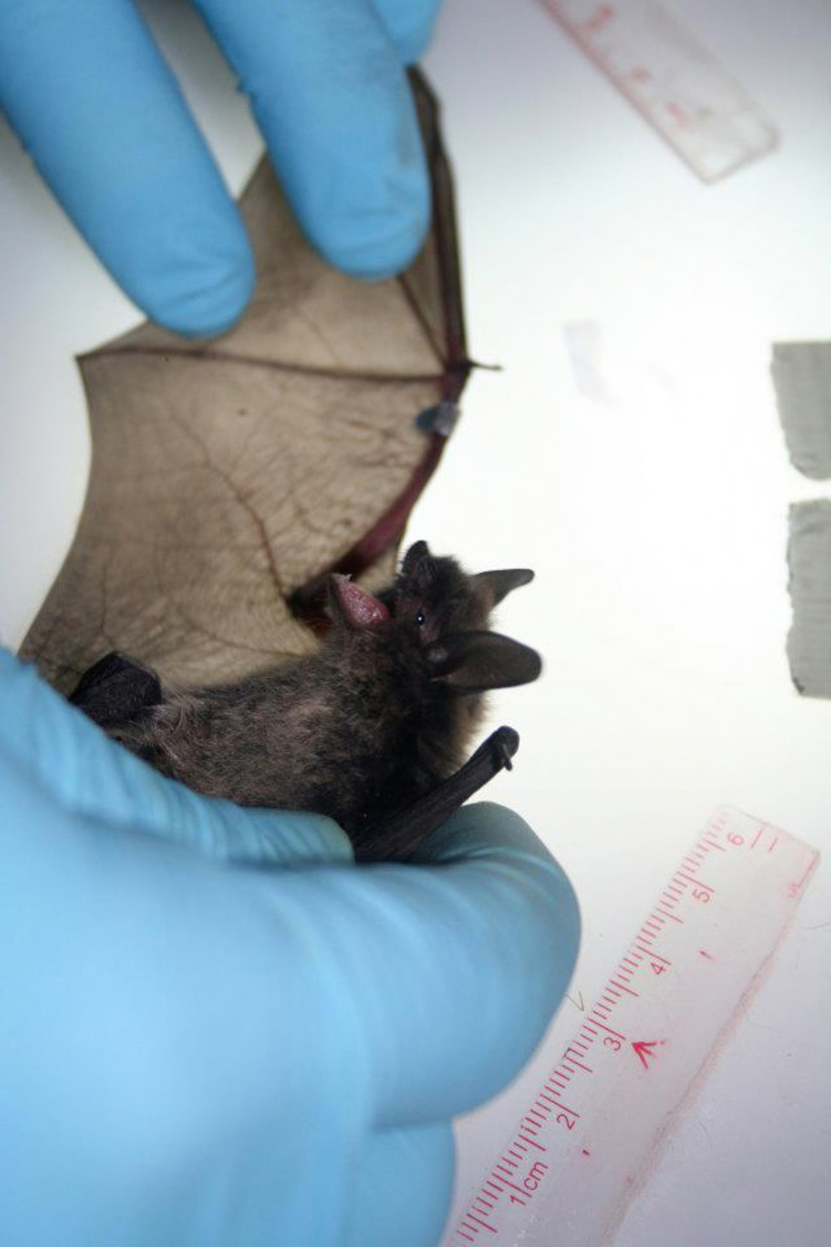 Little brown bat wing inspection