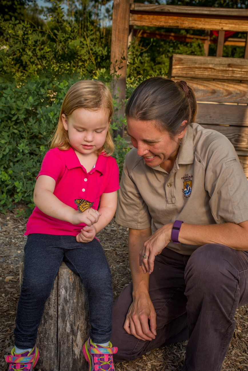 Little girl shows monarch to fws employee