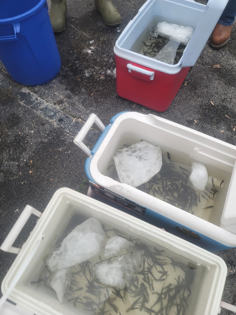 UAB live research specimen transport with ice, hatchery water and 120v inverted aeration