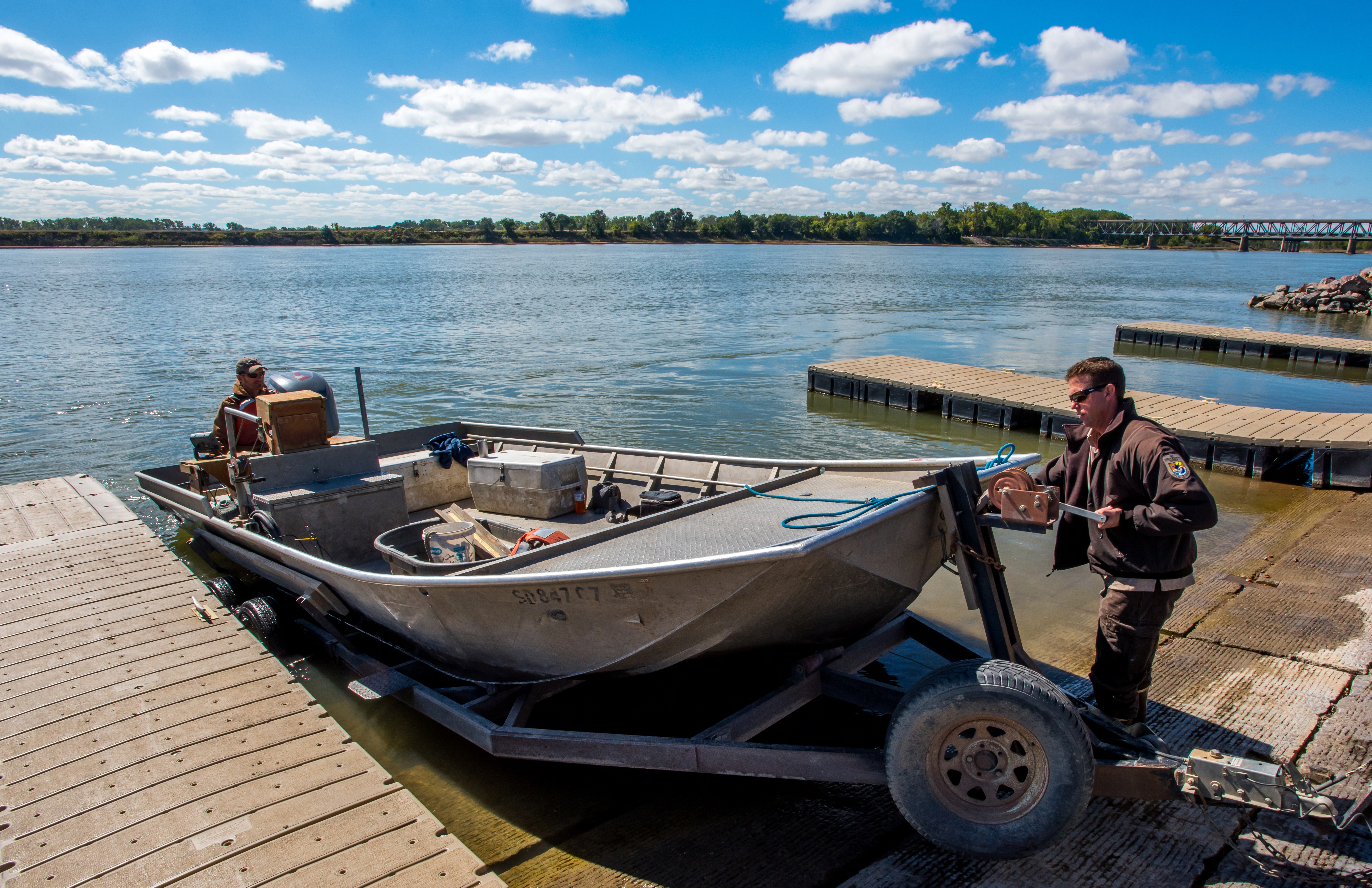 Loading boat on Missouri River