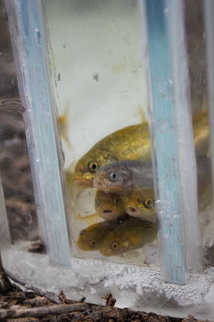 Long Valley speckled dace is currently a petitioned species for listing. This small fish is currently found in only one location within the Long Valley Caldera near Mammoth Lakes, CA. While previously distributed throughout the caldera, all but one population of the species has been extirpated from its historic habitat. Long Valley Caldera is one of the largest calderas in the world and was formed around 760,000 years ago. Threats to the species include nonnative predatory fish and loss of habitat. Credit: Robyn Gerstenslager/USFWS