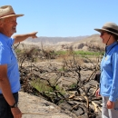 China Ranch owner Brian Brown (Left) describes to Service Biologist Christiana Manville how the 2021 wildfire travelled through the riparian forest adjacent to his date farm. Manville implements the Partners for Fish and Wildlife Program for the Southern Nevada Fish and Wildlife Office.
