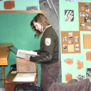 Marjie Lodwick examines files at Winthrop National Fish Hatchery that might be archived.