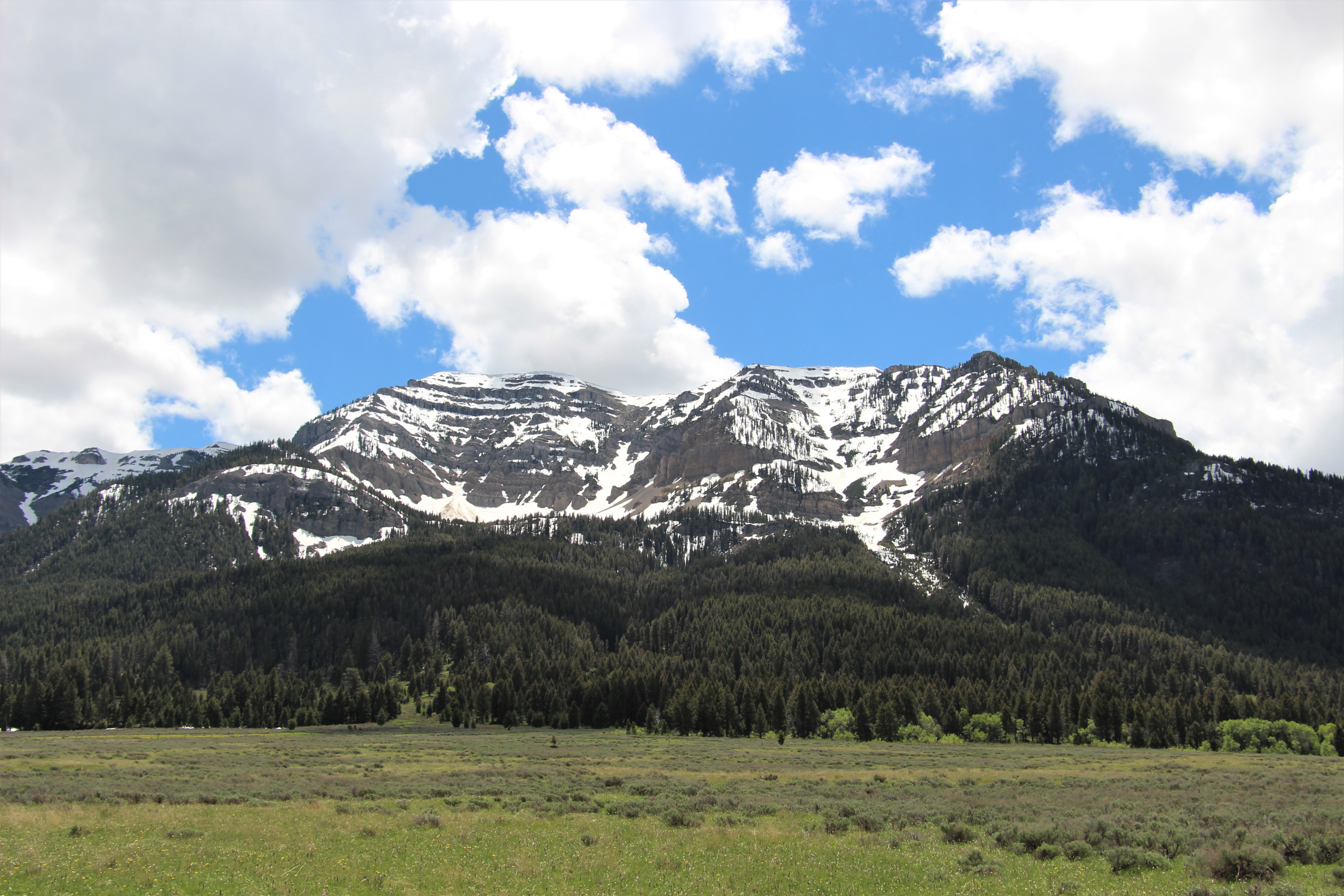 Taylor Mountain, just to the east of Red Rock Lakes National Wildlife Refuge headquarters in Montana, is a prominent feature on the refuge landscape. It holds some of its snow deep into summer.