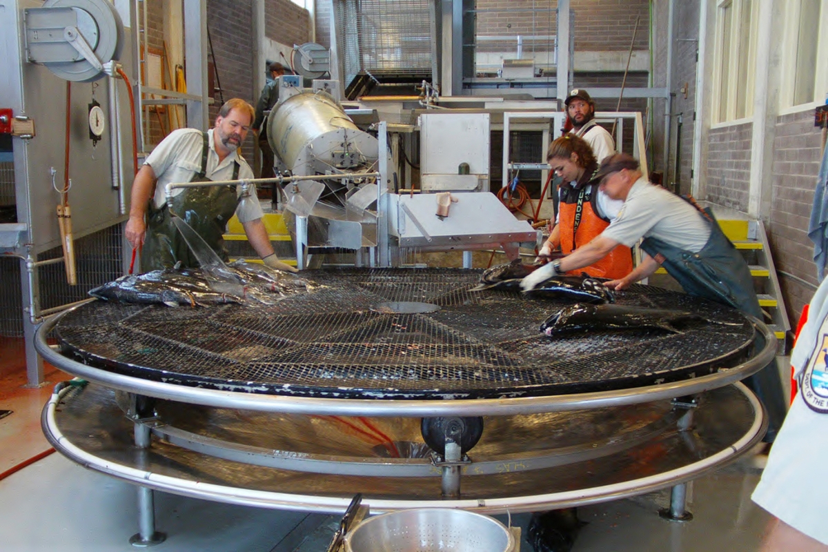 Male and female Chinook salmon are separated prior to spawning. Image taken from USFWS Pacific Region Flickr page.