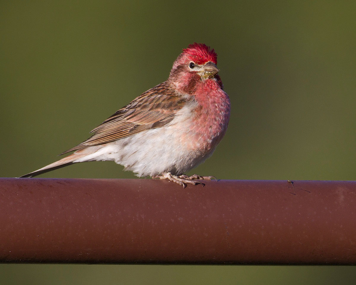 A male Cassin's finch rests on a fence at Red Rock Lakes National Wildlife Refuge. Photo by James "Newt" Perdue/USFWS Volunteer.