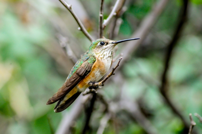 Male Rufous hummingbird on twig