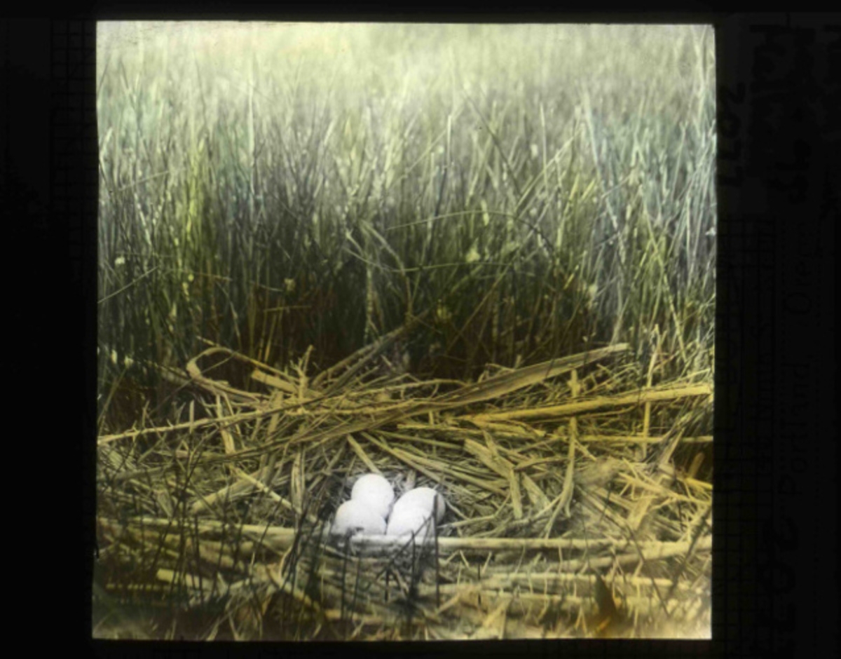 Bird nest located in Malheur lake, 1908. Finley and Bohlman photos of the area in 1908 helped President Roosevelt declare Malheur a bird refuge in 1908. Malheur was once threatened by plume hunters until it was declared a refuge.