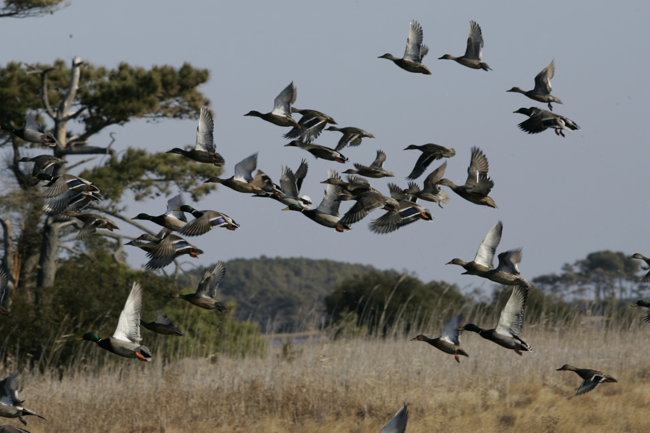 Mallards in flight