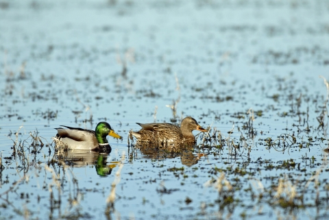 Mallards, male and female