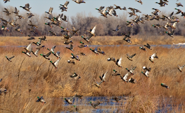 Mallards take flight at Rainwater Basin Wetland Management District in Nebraska.