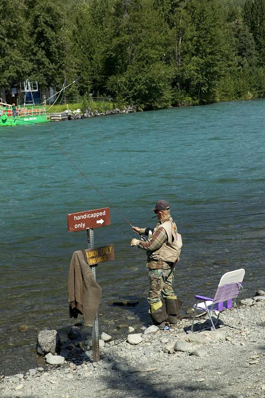 Man fishing in a handicapped area
