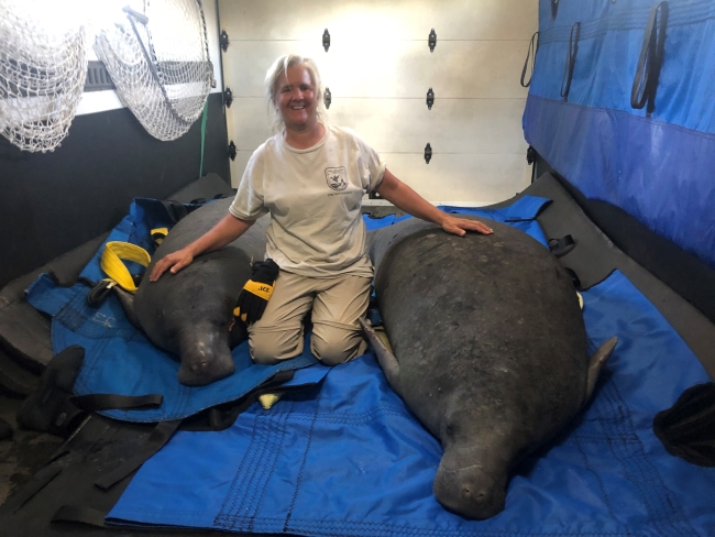 USFWS employee Amy Midgette, from Alligator River National Wildlife Refuge in North Carolina, helped transport two rescued manatees to SeaWorld in February 2022. Both manatees were rehabilitated and returned to the wild.