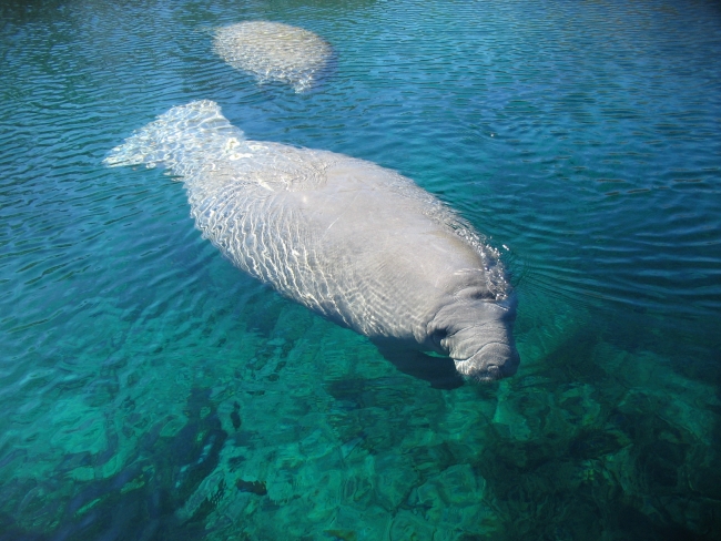 Manatees in natural spring habitat at Wakulla Springs during the 2008-2009 winter. Some manatees frequent the spring in the winter months to take advantagte of the warmer water