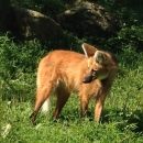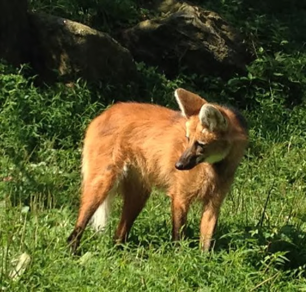 The maned wolf of South America is a magnificent animal with a pointed muzzle and very large erect ears. Photo taken in the Pampas of Argentina.