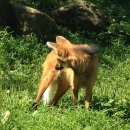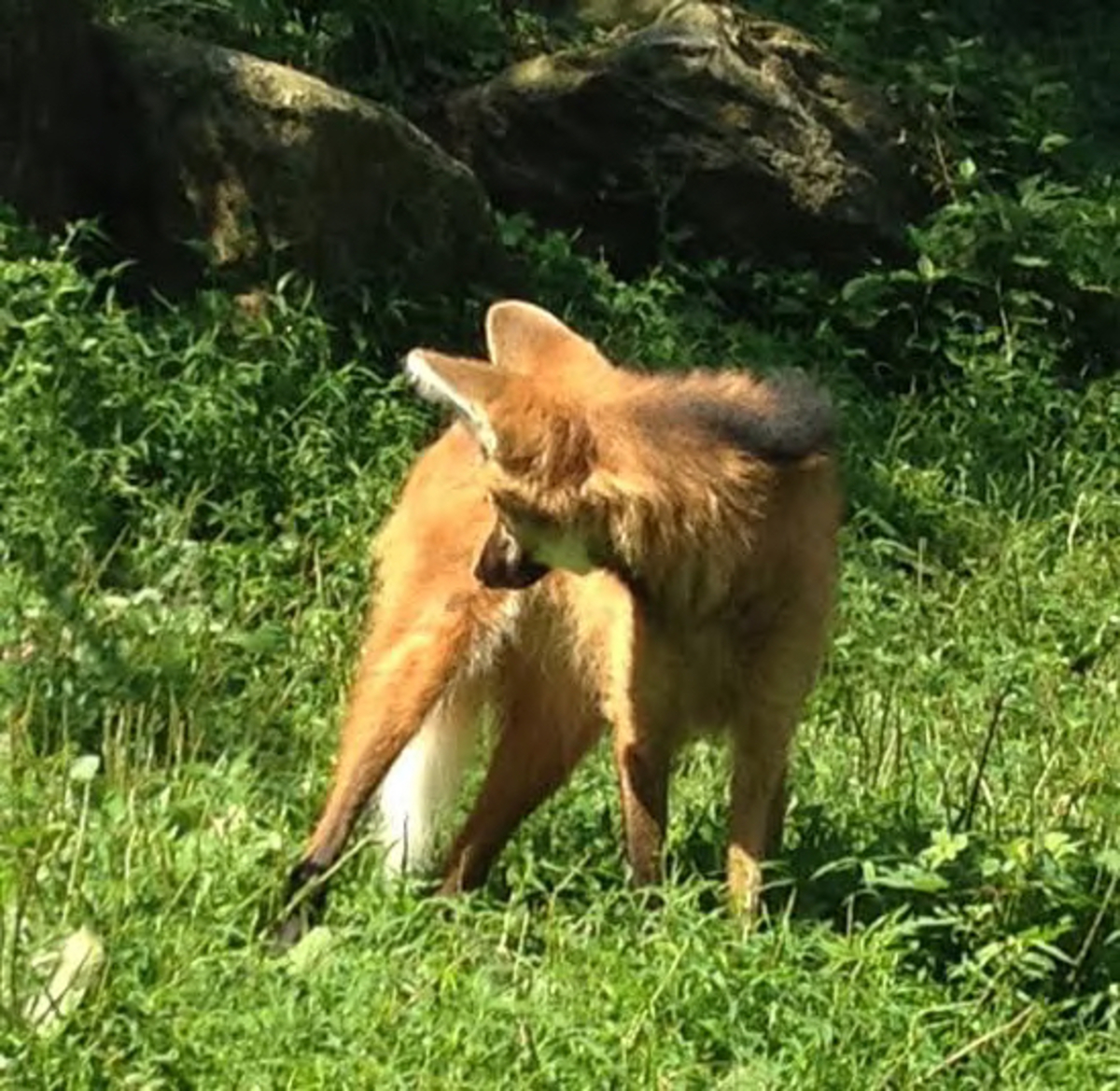 The maned wolf of South America is a magnificent animal with a pointed muzzle and very large erect ears. Photo taken in the Pampas of Argentina.