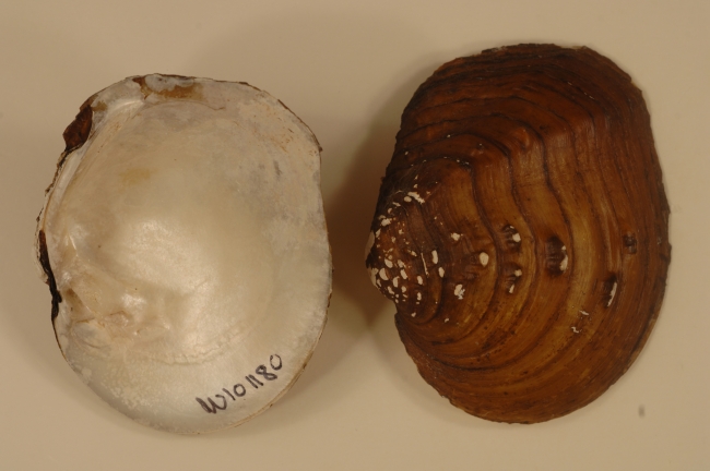NCTC Freshwater Mussels Teaching Collection: Order: Unionoida Family: Unionidae Genus (ITIS): Quadrula Species: quadrula Williams et al.: Use to be: Location Name: Wolf River, downstream of Hwy 22 bridge, Shawano Location State: WI