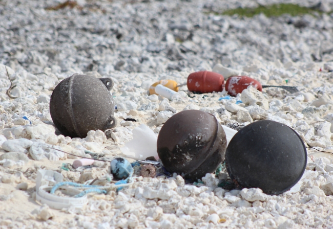 Marine debris pollutes the beach at Papahānaumokuākea Marine National Monument, Midway Atoll National Wildlife Refuge.