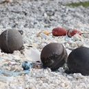 Marine debris pollutes the beach