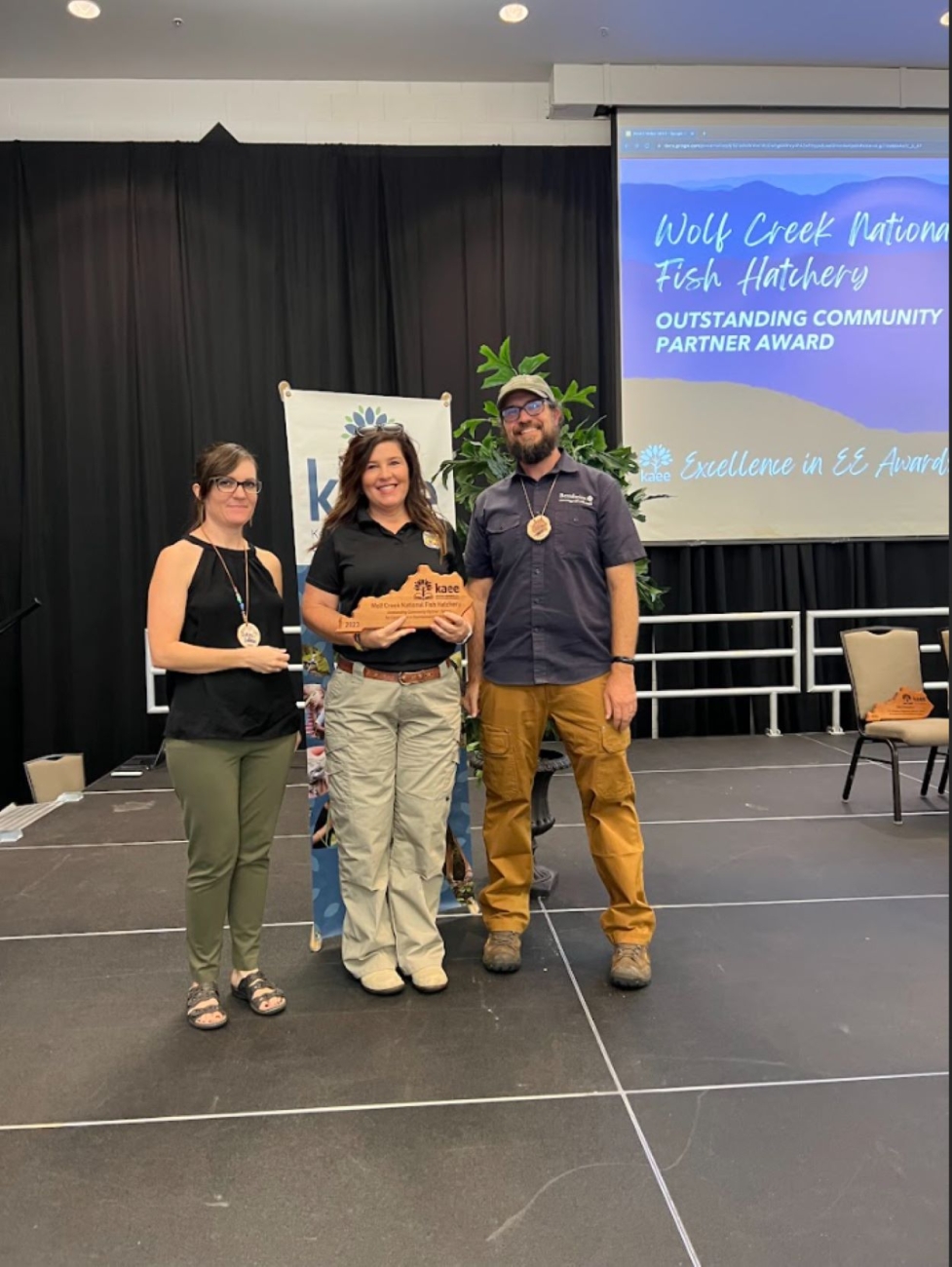 Environmental Education/Outreach Specialist, Marsha Hart, accepted the Outstanding Community Partner Award from the Kentucky Association for Environmental Education on behalf of Wolf Creek National Fish Hatchery at the 2023 KAEE Conference in Cave City, KY.