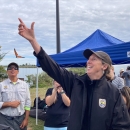 U.S. Fish and Wildlife Service Director Martha Williams releasing a tagged monarch while visiting Masonville Cove Urban Partnership in September 2022