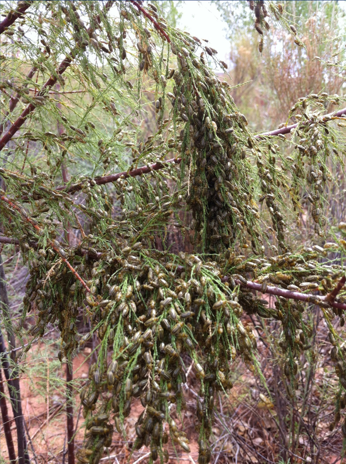 Mass beetle aggregation on tamarisk.