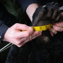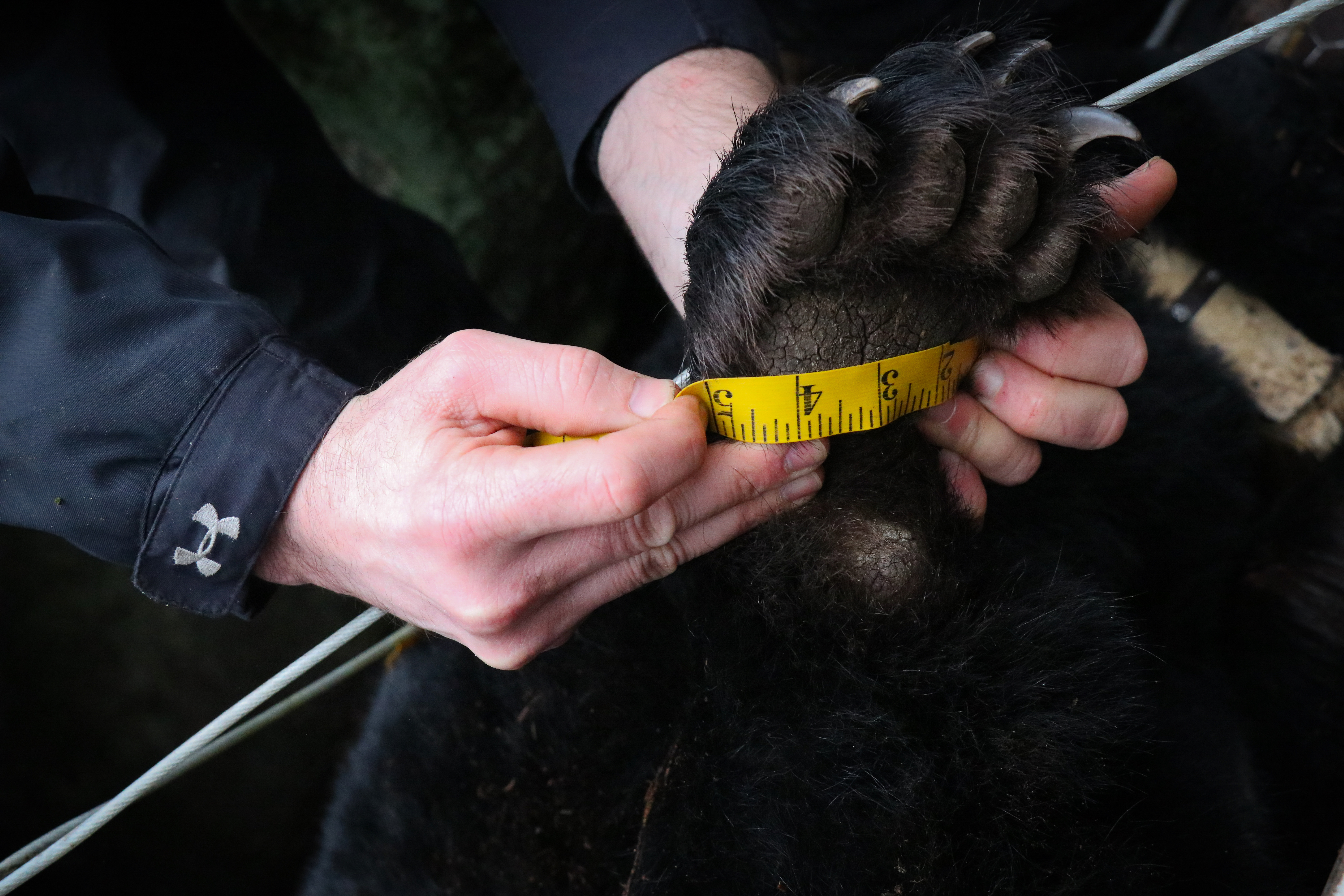Maryland DNR measuring black bear paw. Documenting the black bear cubs tagging process for the Online Educational Video Series Conservation Connect