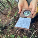 Sue Cameron, U.S. Fish and Wildlife Service, uses a densiometer to measure tree canopy while monitoring spruce-fir moss spiders at Mt. Rogers, Virginia.
