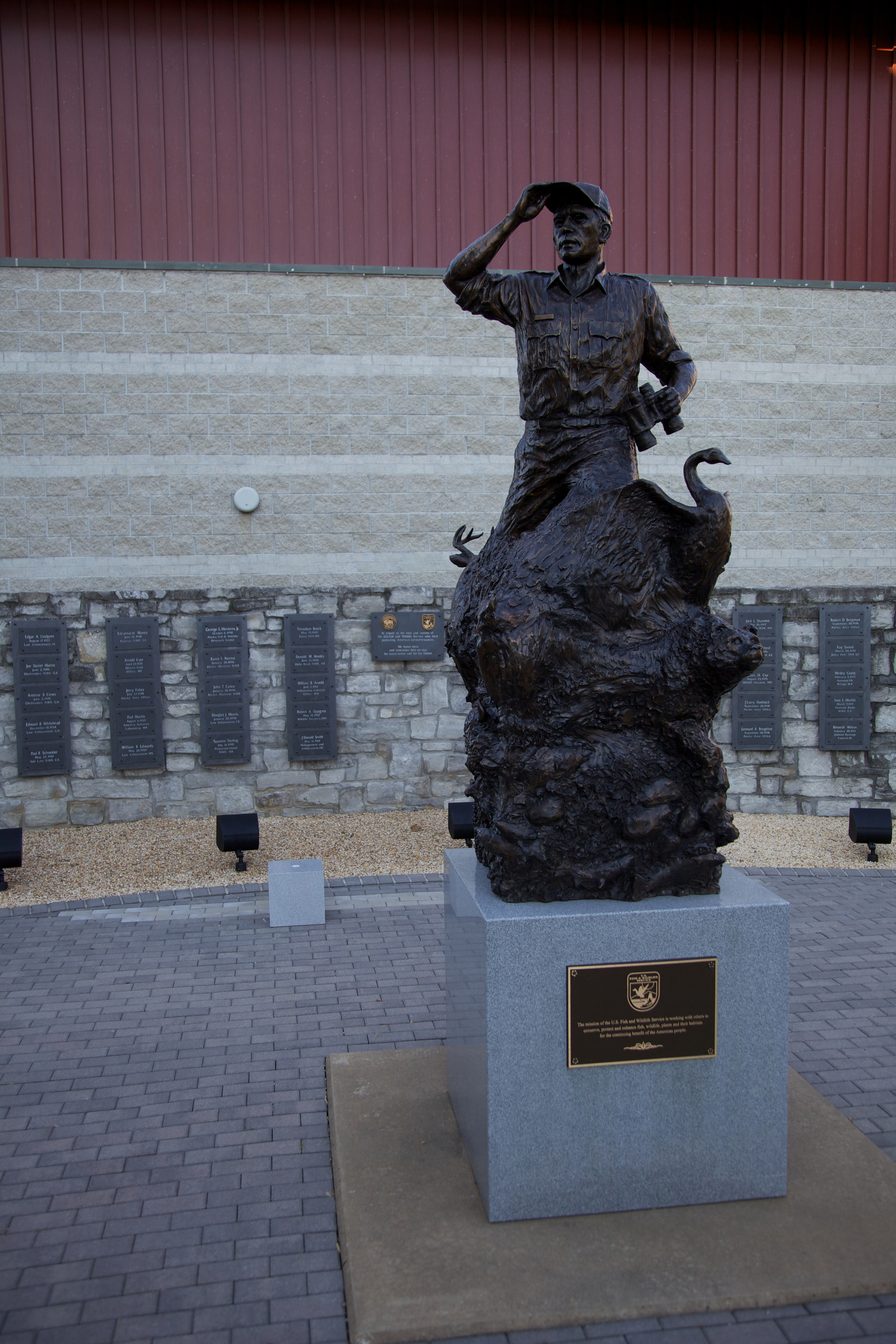 Memorial statue with FWS mission