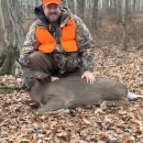 Mentee Bryan with his harvested doe as part of the Field to Fork mentored rifle deer hunt at Cherry Valley National Wildlife Refuge in December 2024.