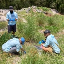 Staff at Midway Atoll setting plots to monitor arthropods during seabird protection project.