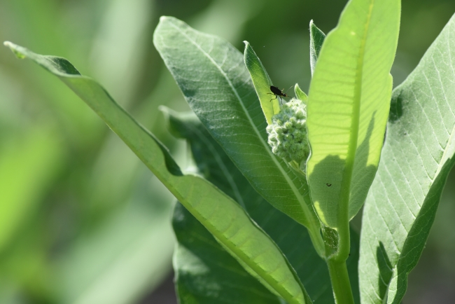Milkweed bug on common milkweed.