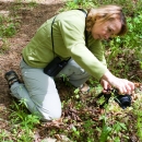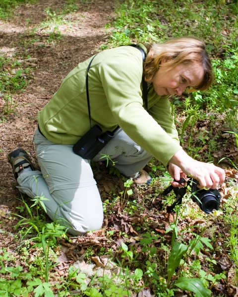 Fish and Wildlife Service employee Sallie Gentry photographs wildflowers on Mill Hill Trail at William L. Finley National Wildlife Refuge.