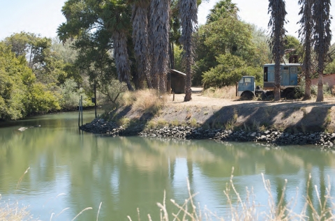 Image of a truck parked at Miner Slough in the Sacramento River Basin. Image taken from USFWS Pacific Southwest Region Flickr page.