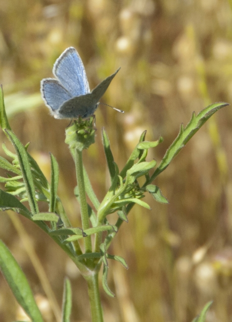The endangered Mission blue butterfly (Icaricia icarioides missionensis) is a small, delicate butterfly with a wingspan of about 1 to 1.5 inches.