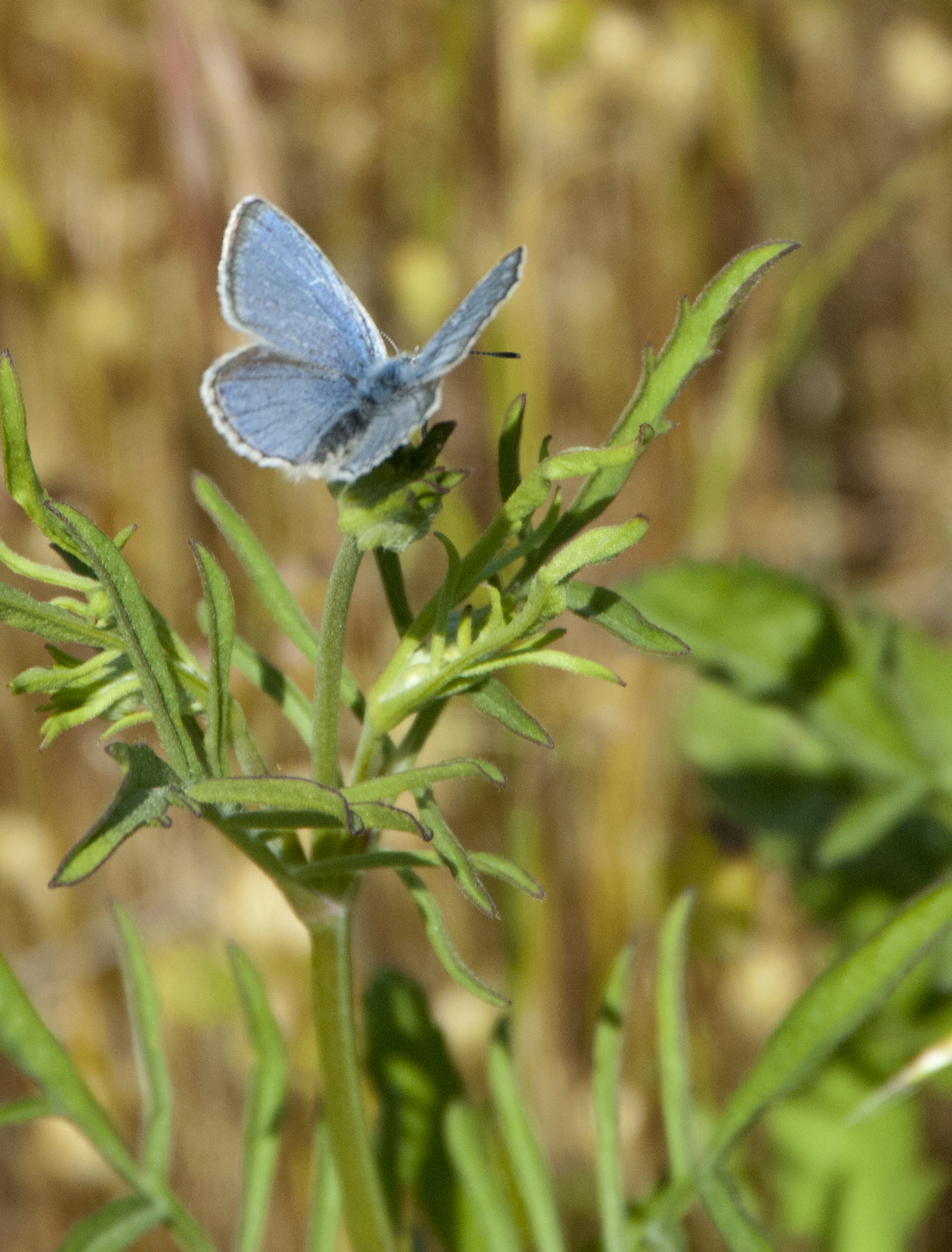 The endangered Mission blue butterfly (Icaricia icarioides missionensis) is a small, delicate butterfly with a wingspan of about 1 to 1.5 inches.