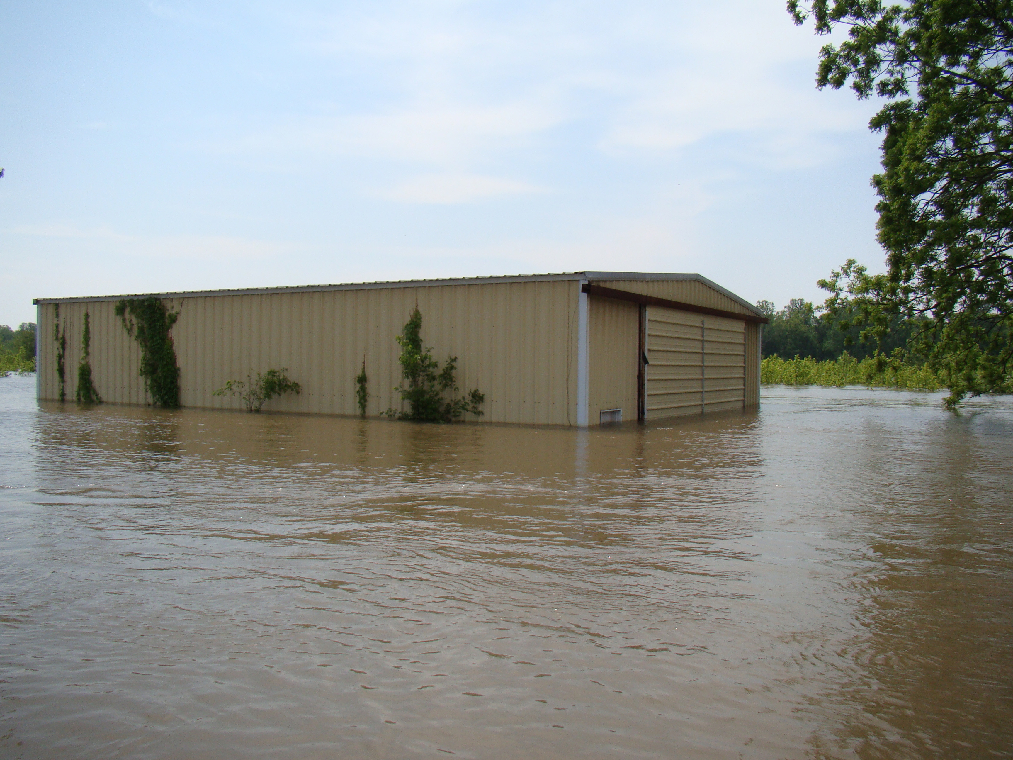 Six feet of water had inundated a storage facility by May 9 on the Chickasaw National Wildlife Refuge on the Mississippi River near Ripley, Tennessee. Refuge staff worked in the days ahead of the flood to move equipment, such as bulldozers and backhoes, to higher ground.