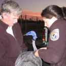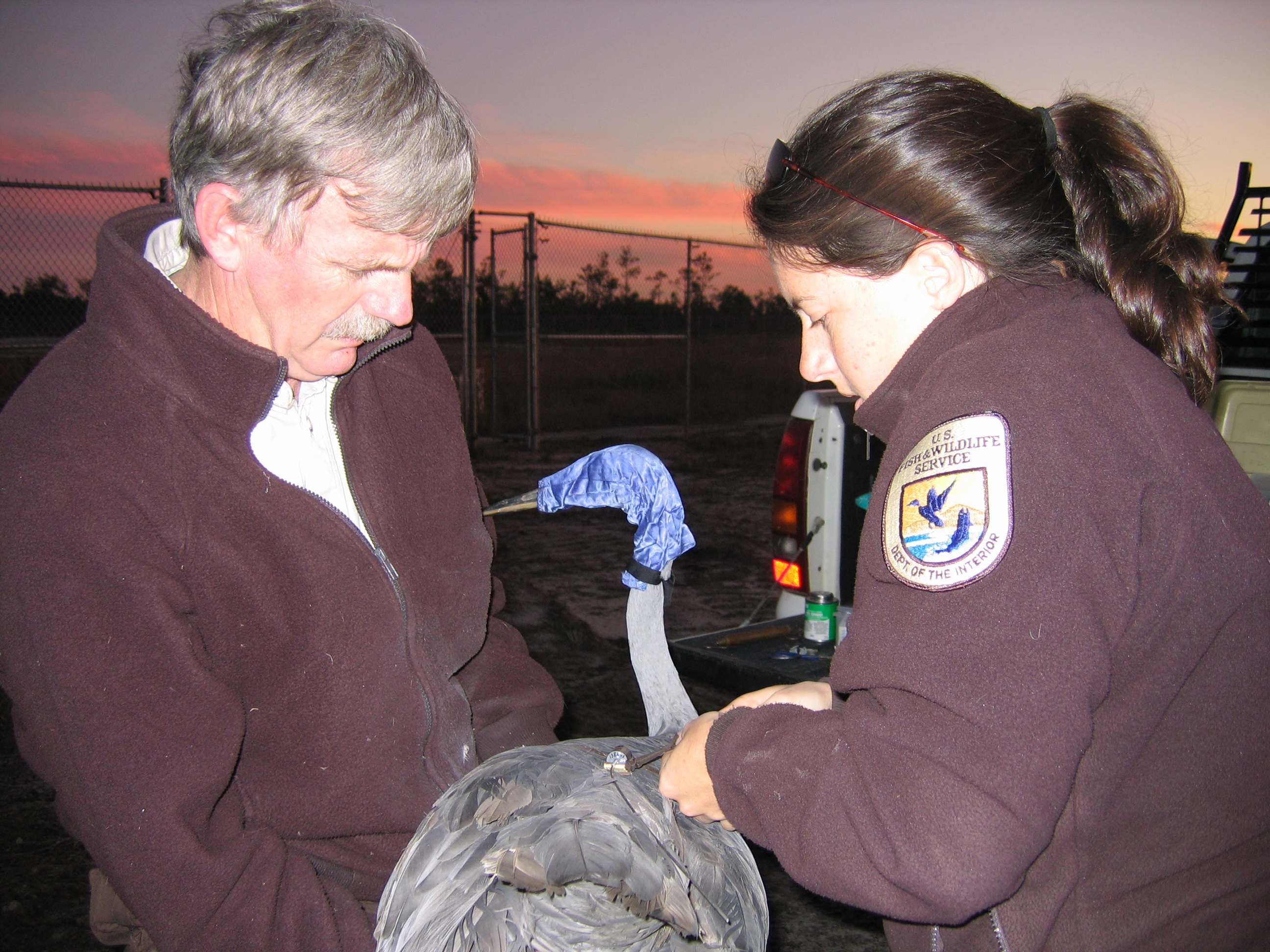 Fish and Wildlife Service employees inspect a Mississippi Sandhill crane.