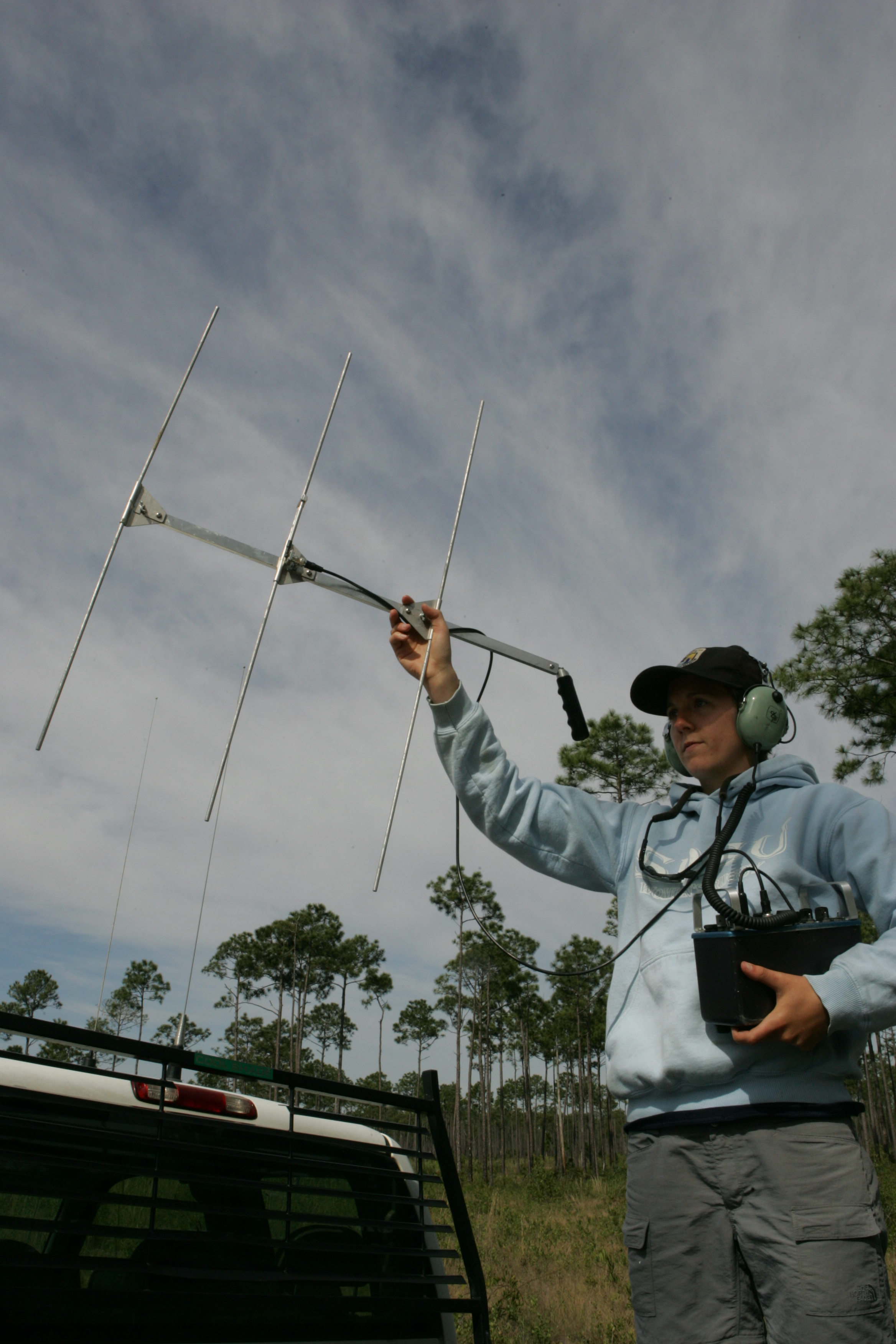 Service employee uses tracking device to locate Mississippi Sandhill Cranes